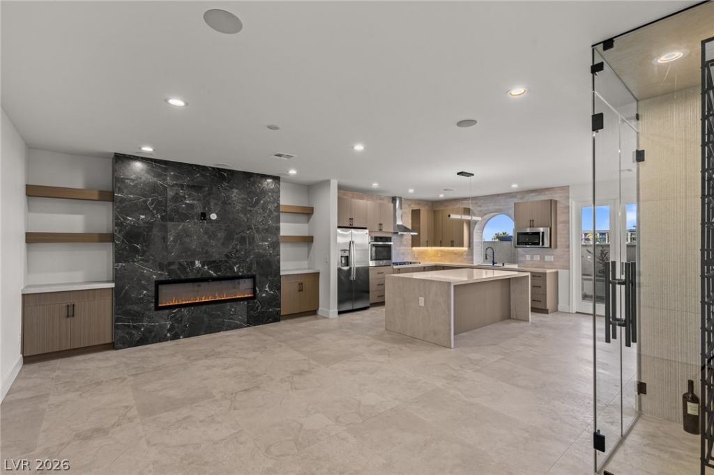 WOW! This SPECTACULAR home is ONE OF A KIND! RARE to find a fully modernized home in GUARD GATED Green Valley Ranch location with a PRIVATE POOL & STRIP VIEWS! No expense spared in professional DESIGNER remodel to make feel like a NEW Model Home! Unlived in since complete 2026 renovation. This 3 bedroom, 2.5 bath, 2 car garage home has an open concept, immaculate finishes & spacious floorplan. STUNNING Chef's Kitchen w/ BRAND NEW Cabinets, Quartz Counters & Stainless Appliances! Living room features linear fireplace & wine cellar display. All bathrooms have been completely remodeled! Custom closets in primary suite. Luxury LVP wood & tile floors throughout entire home, so don't worry about dirty carpets! Fresh paint, modern design features & more! Located in PRIME LOCATION adjacent to The District, GVR hotel & spa, Lifetime Fitness, jogging trails, parks, 215 freeway access & more! Too many upgrades to list! Please CALL/TEXT listing agent JORDAN BETTEN for more info & showings